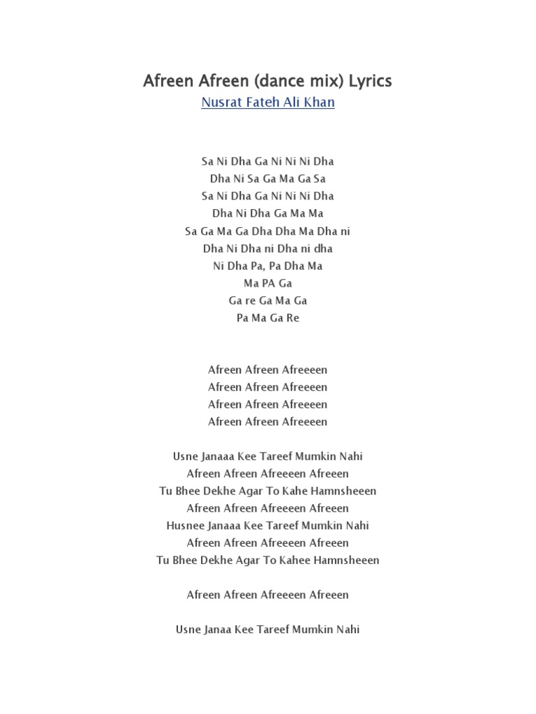 Afreen Afreen Dance Mix Lyrics By Nusrat Fateh Ali Khan Sa Ni Dha Ga